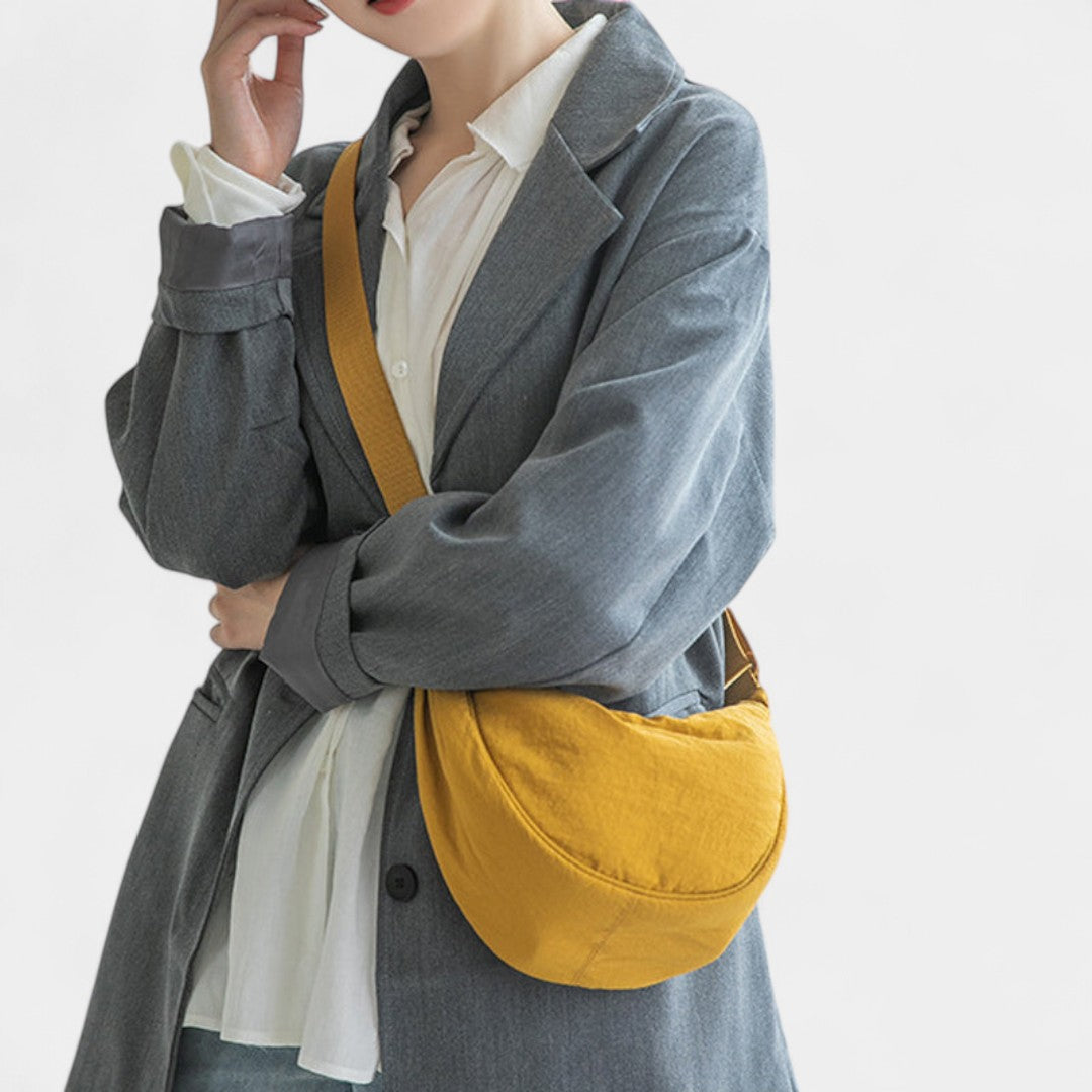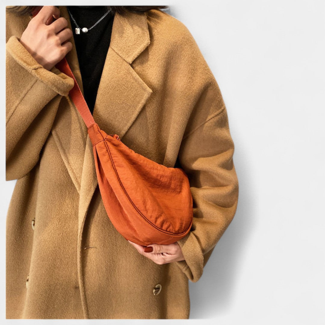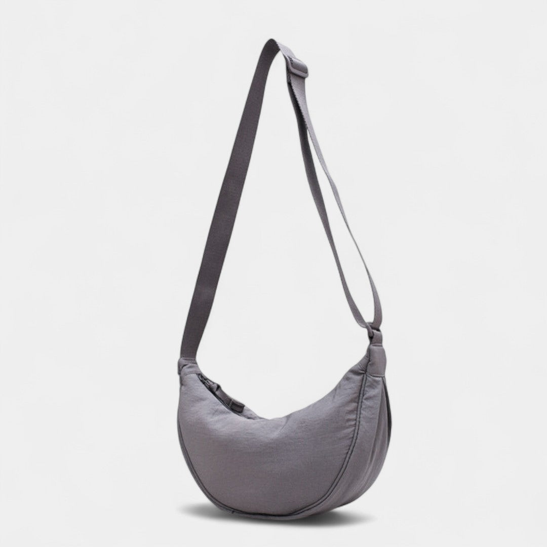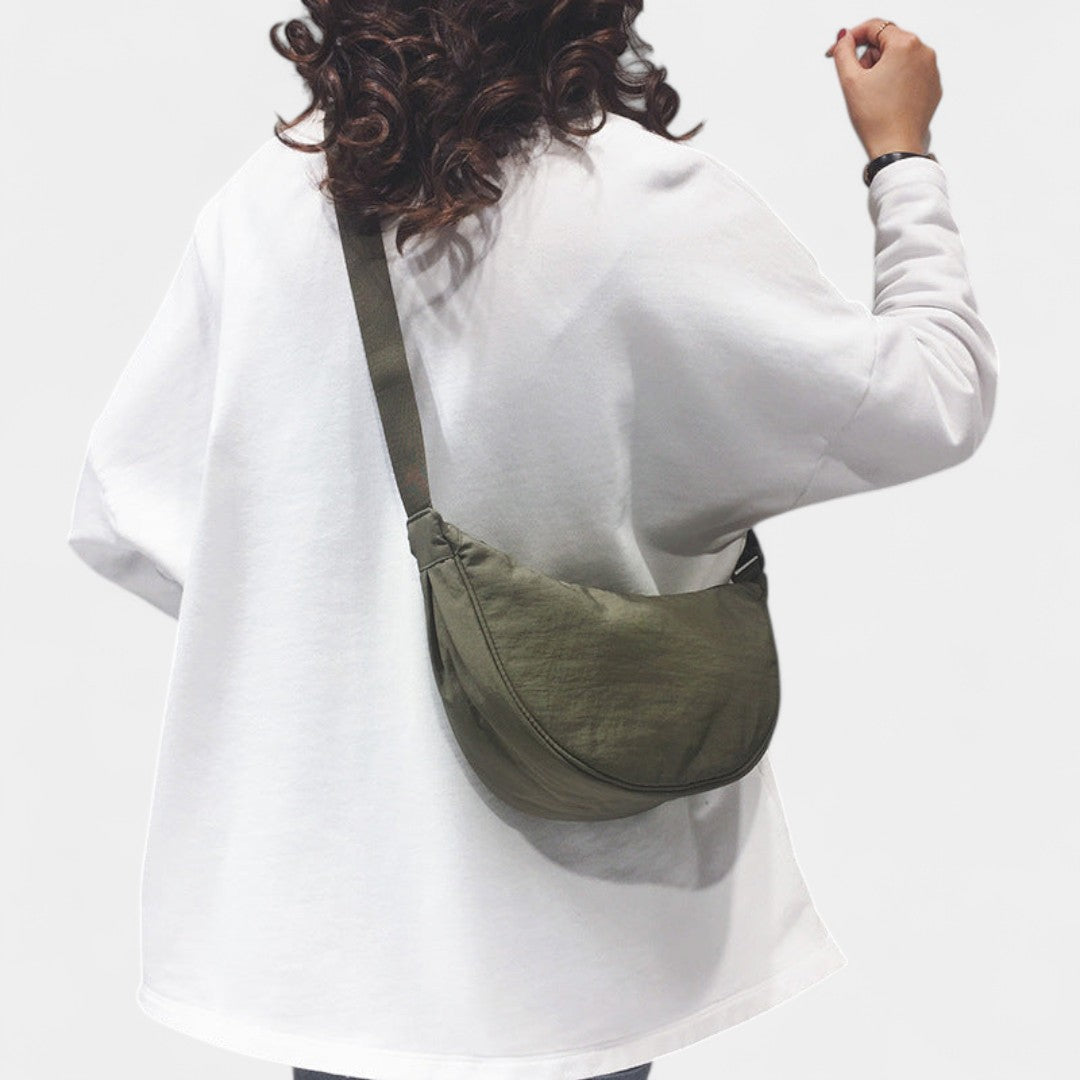 Llévalo al hombro o cruzado: su diseño curvado se ajusta cómodamente a tu cuerpo y su tejido resistente lo hace perfecto para aventuras urbanas, recados o escapadas de fin de semana. Disponible en tonos naturales fáciles de combinar.