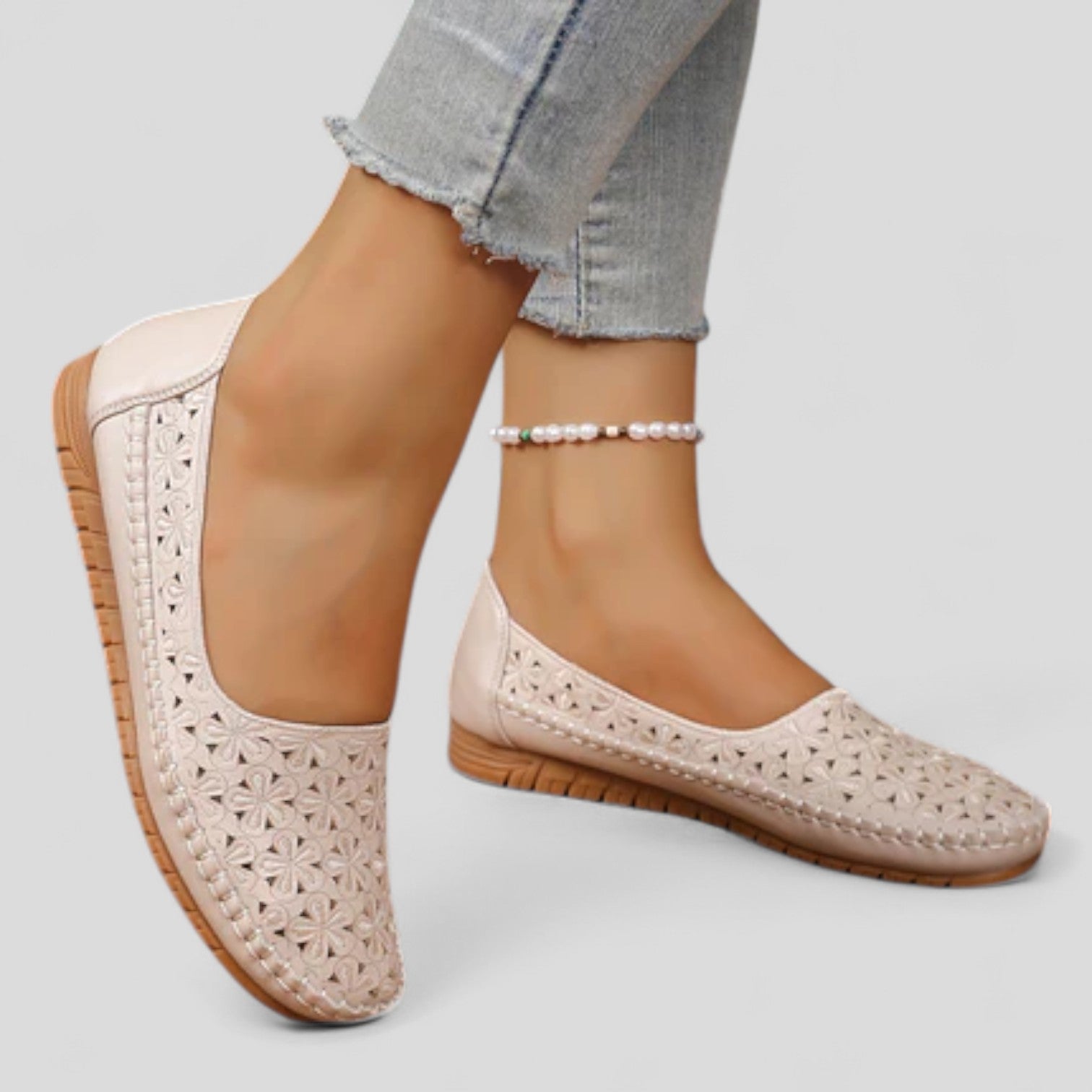 Estos zapatos combinan comodidad y diseño floral. El patrón calado permite que el pie respire con frescura y elegancia.