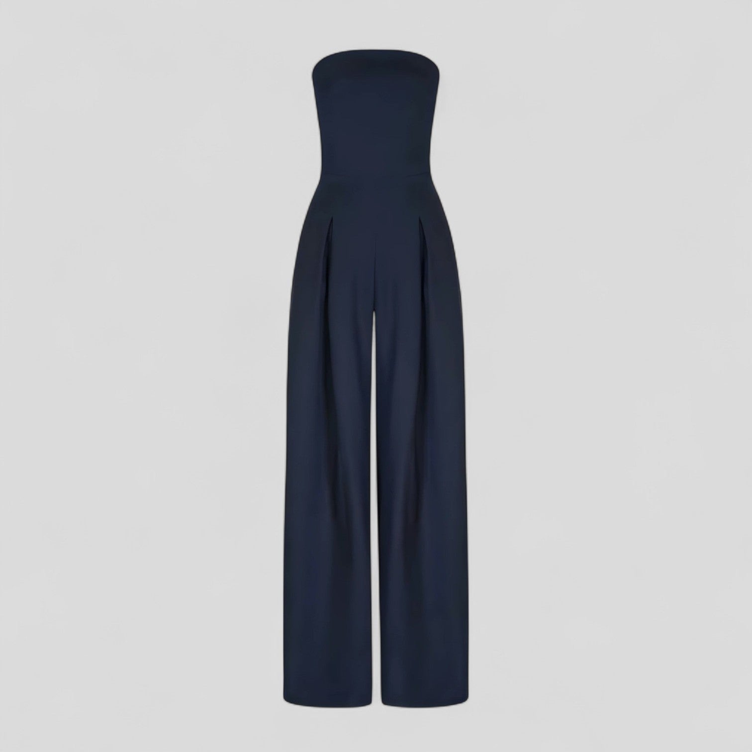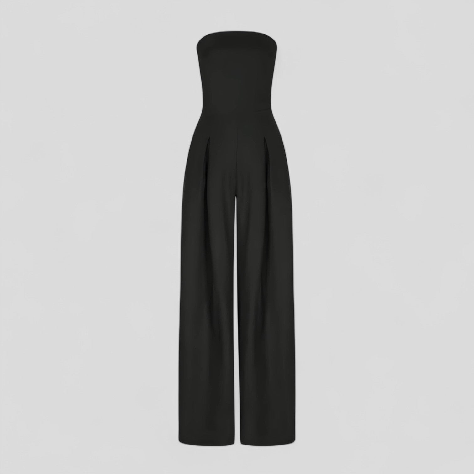 Este elegante mono combina un diseño minimalista con una sofisticación atemporal. La parte superior sin mangas y sin hombros destaca los hombros y el escote de manera estilosa. La cintura alta se transforma en un pantalón fluido y de corte amplio, creando una silueta moderna y al mismo tiempo femenina.