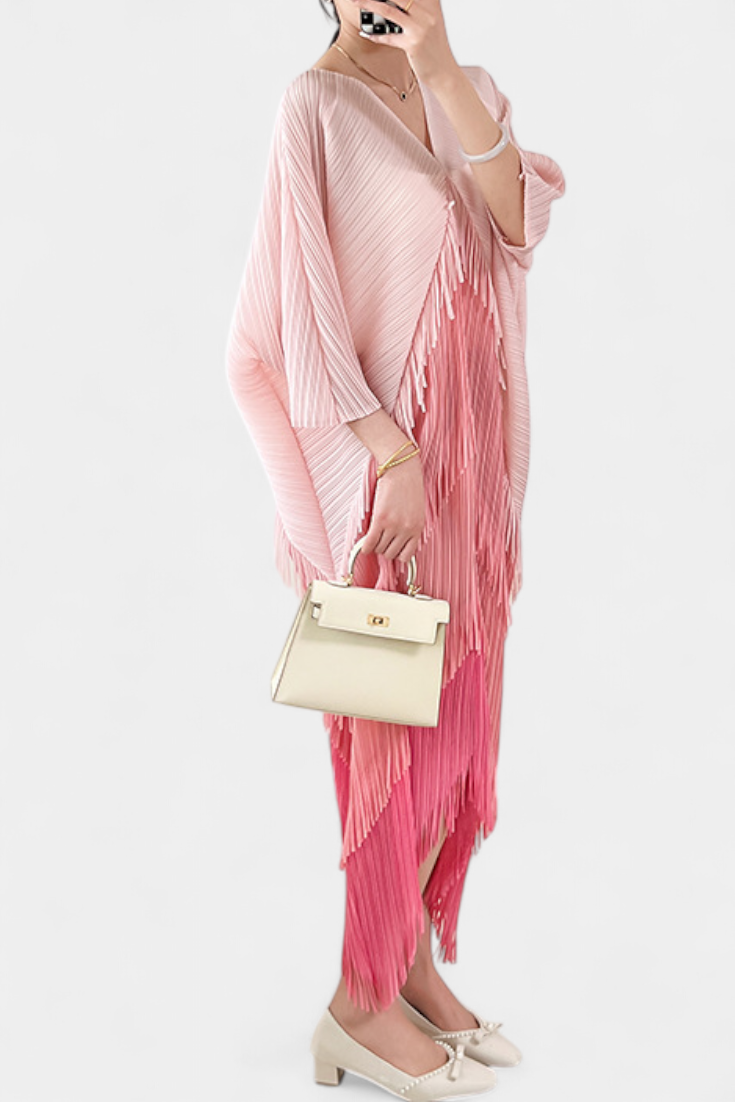 Andalusia Vestido con Borlas y Bloques de Color Contrastantes
