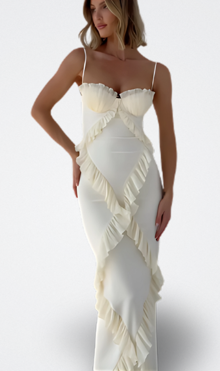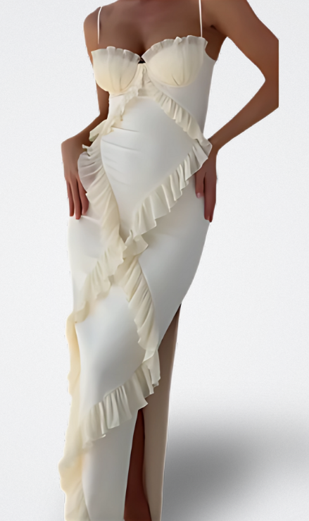 Aura Vestido Satinado con Volantes
