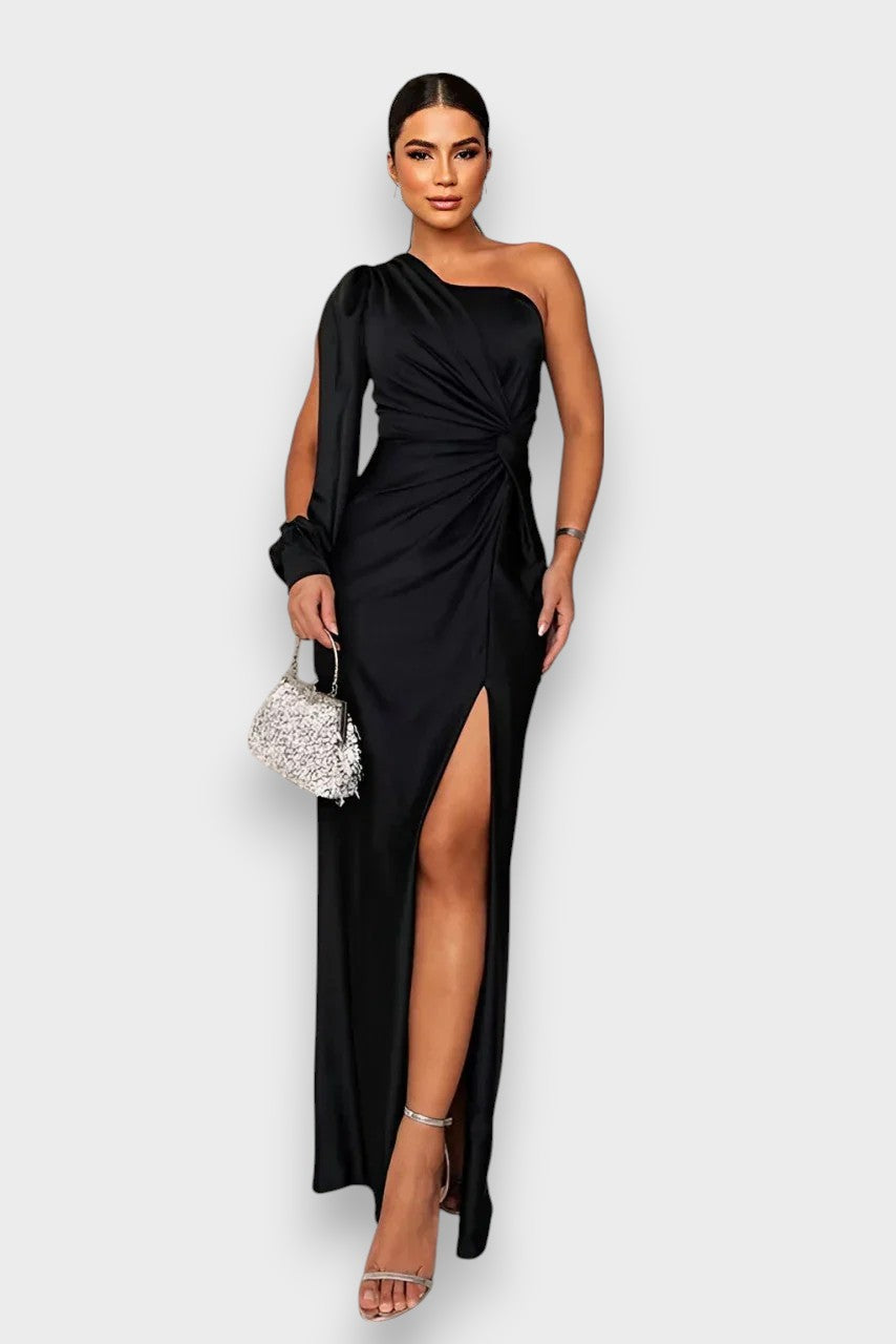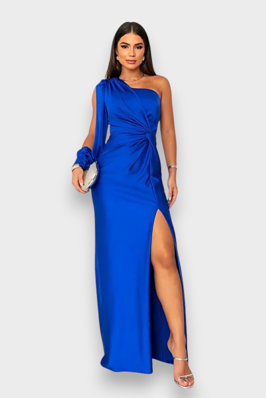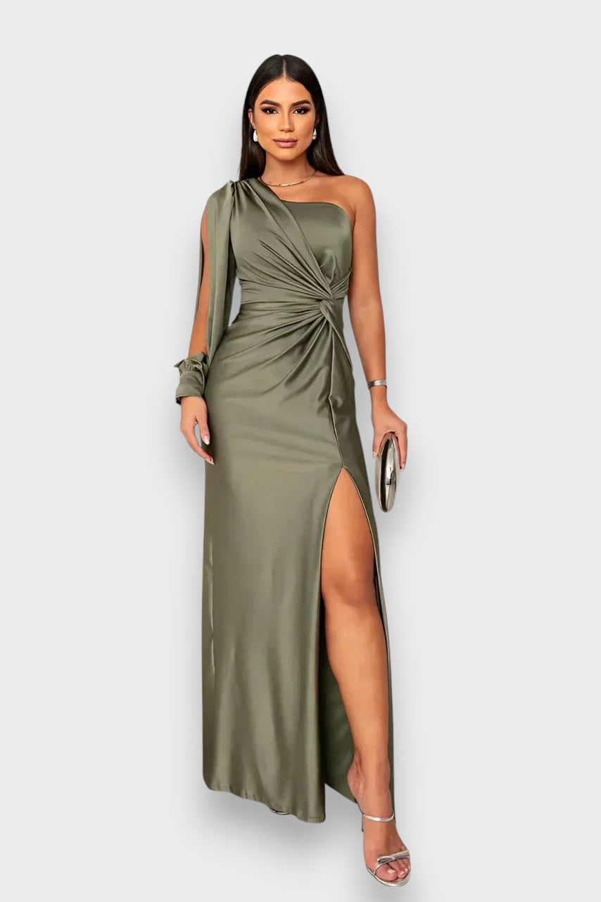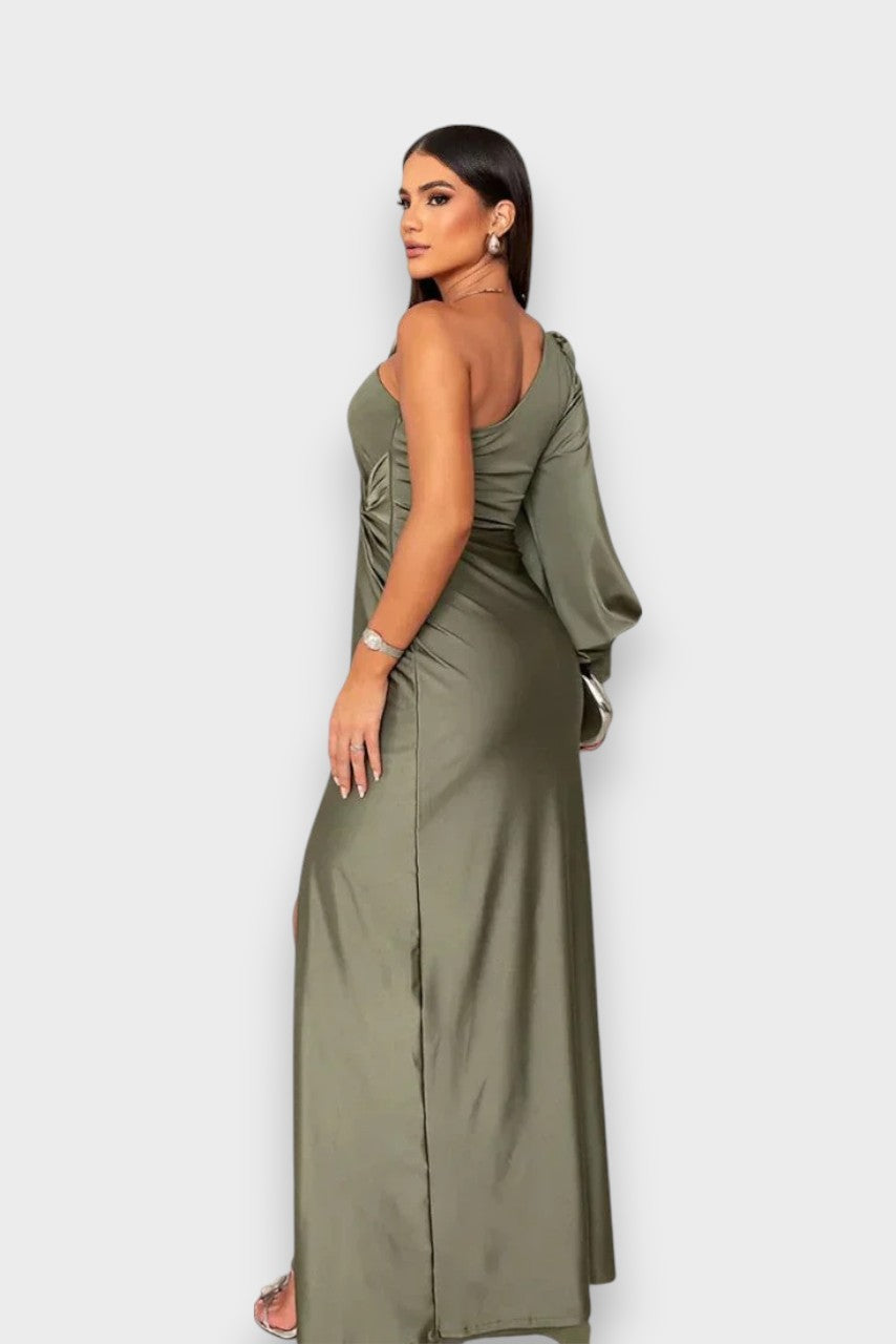 Da rienda suelta a tu estilo con el vestido Avalon , que combina elegancia y estilo en un sofisticado tono verde. Este maxivestido tiene un favorecedor tirante de un solo hombro con mangas largas abiertas en tejido sedoso, un corte fluido y un dobladillo holgado para asegurarte un aspecto estupendo sea cual sea la ocasión.