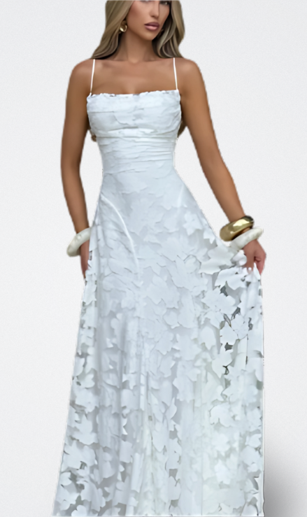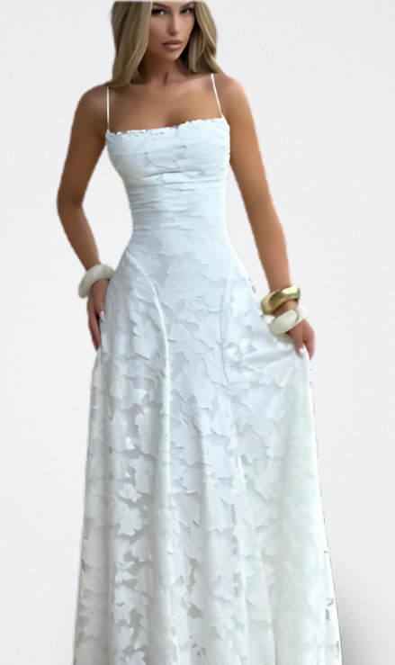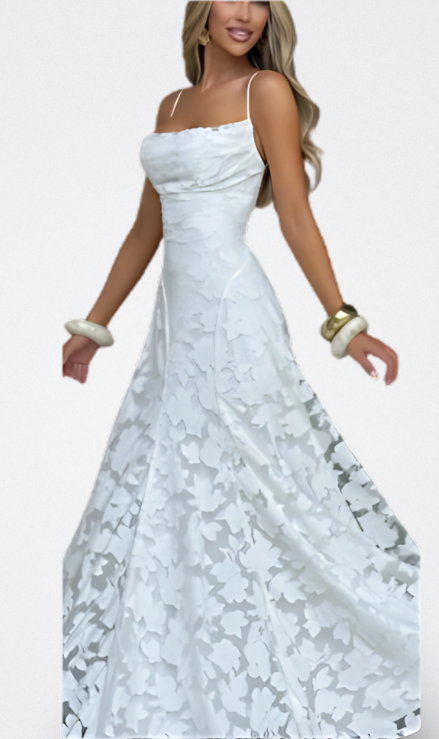 Este vestido es como un suspiro al amanecer: ligero, elegante y lleno de encanto. Perfecto para recorrer las callecitas blancas de Ibiza, ir de invitada a una boda junto al mar o disfrutar de un brunch al sol en un jardín mediterráneo. Te verás luminosa, tranquila… y absolutamente inolvidable.