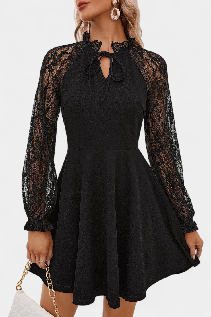 Jasella Vestido Mini de Encaje Floral con Mangas Largas